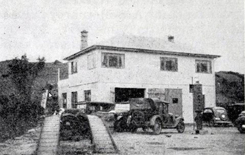 Solhaug og istidsstein bak nytt bilverksted 1938.