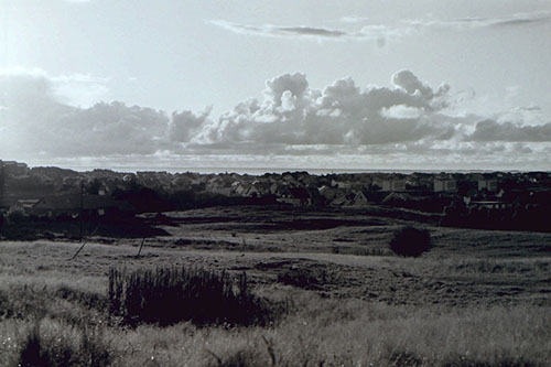 Solvang skole. Solhaug har utsyn til kystlinjen og solnedgangen i nordvest.